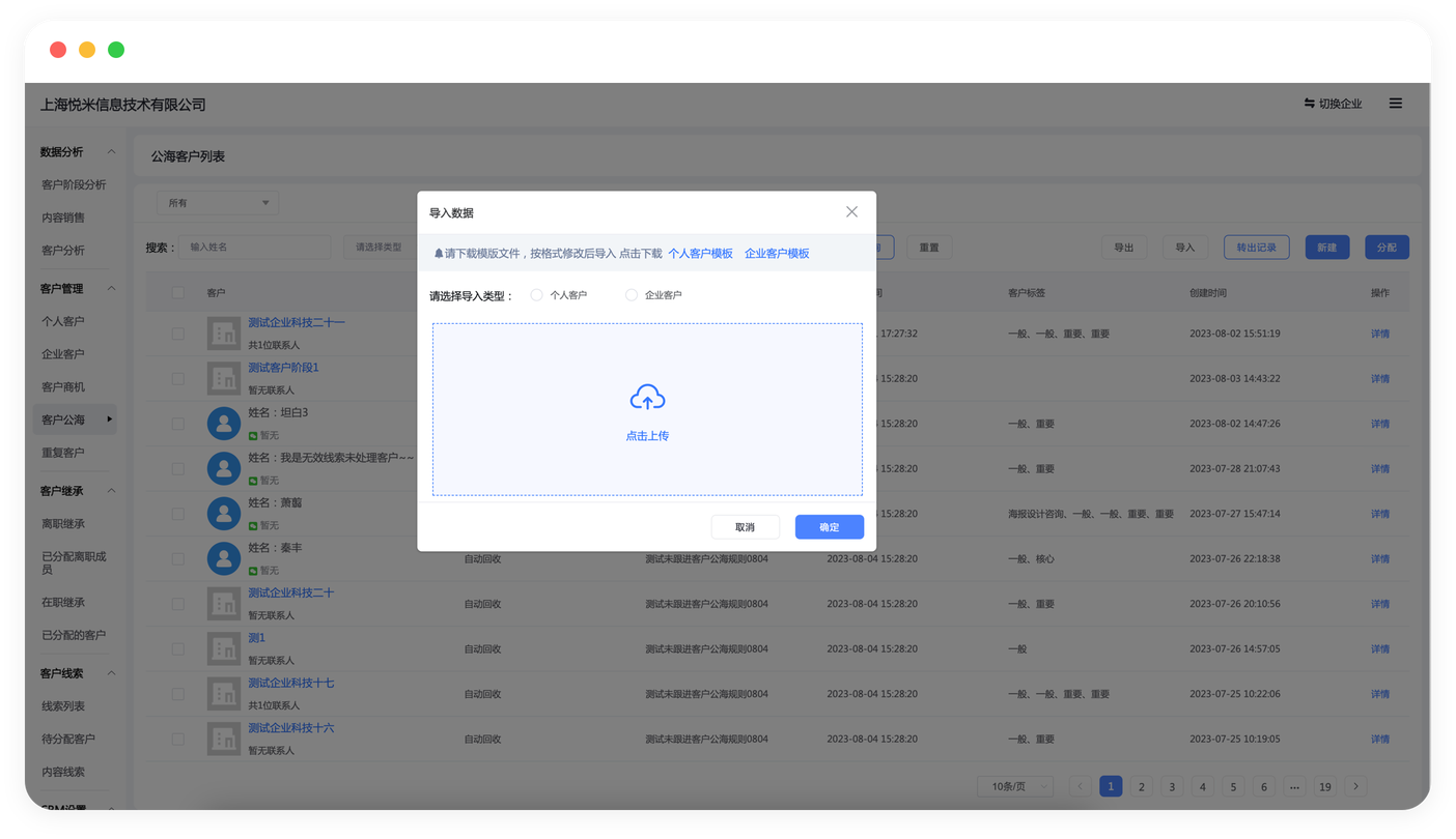 支持企业批量导入客户信息,一键导入企业客户、个人客户,同时支持导入企业邮箱联系人,便捷进行客户信息管理
